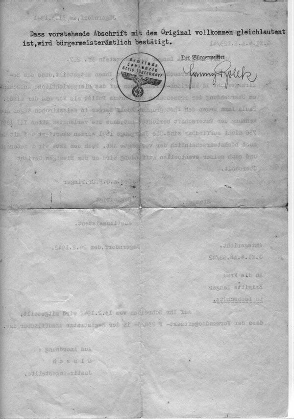 ST: Where, you know, the worst possible place to be at that time. Now, I can see through the papers that I’ve found that she spent a lot of years looking for background information as to how much of a Jew she was. The Nazis had introduced with the Nuremberg laws in 1935 I think it was. Some sort of pseudo scientific methodology to decide how much of a Jew you are in blood. And it depended on how many…